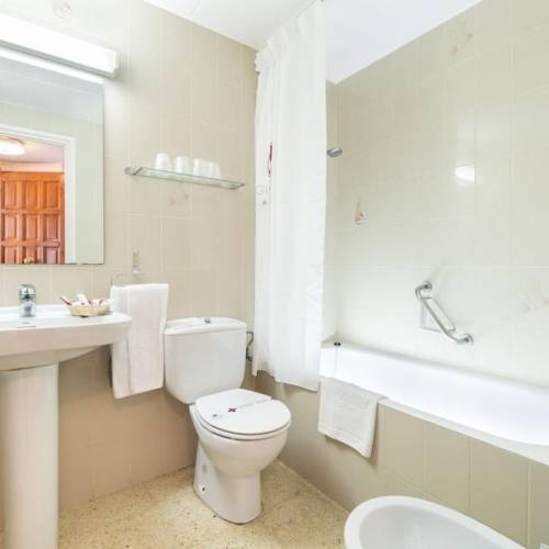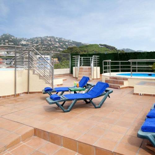 Lloret de Mar, EspañaSITUACION;:El hotel dispone, además de unas cómodas habitaciones, de unas instalaciones y servicios excepcionales tales como sala de juegos, sala de lectura y caja fuerte en recepción. Además, cuenta con un billar, hamacas y un bar en el que tomarse una copa por la noche, una refrescante piscina, terraza solarium y un restaurante que sirve deliciosos platos catalanes para las cenas estilo bufet. HABITACIONES:El hotel cuenta con habitaciones decoradas con un estilo hogareño y todo tipo de comodidades para los huéspedes, incluyendo baño completo, calefacción, teléfono, música, caja fuerte, televisor y terraza o balcón. SERVICIOS COMUNES:The hotel has a refreshing outdoor swimming pool with a sun terrace with hammocks and a bar where guests can enjoy a drink in the evening. There is also a pool table and sun loungers and parasols are provided on the nearby sandy beach.