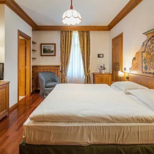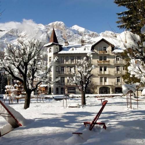 Cortina d'Ampezzo, ItaliaLocalizado a sólo un par de minutos caminando de la zona peatonal a la moda de Corso Italia. Rodeado por todos los lados por las Dolomitas, las cuales han sido declaradas uno de los únicos 189 Sitios Patrimonio de la Humanidad por la UNESCO. Los Cuartos Comforts, con camas tamaño king o camas gemelas. Decorados con mobiliario contemporáneo. Equipados con todas las comodidades modernas, WiFi gratis, TV Lcd, cuartos de baño en mármol, cómodos sillones, mini-bar y caja fuerte. Ofrece magníficas vistas hacia las montañas. El restaurante es amplio y refleja el estilo moderno del hotel. El atento y cortés servicio y la fina cocina y vinos son un placer para sus huéspedes y pueden satisfacer hasta el paladar más refinado Un Hotel histórico y elegante construido a principios del siglo XX. El área del vestíbulo tiene es en Gran Estilo, con altas columnas de mármol y amplias ventanas en arco. Hay amplios asientos con cómodos sofás. Su pintoresca ubicación rodeada por montañas de dolomitas. Uno de los hoteles más hermosos en Cortina D'ampezzo en uno de los destinos internacionales más hermoso y prestigioso a nivel mundial para deportes de invierno. RO 9/10