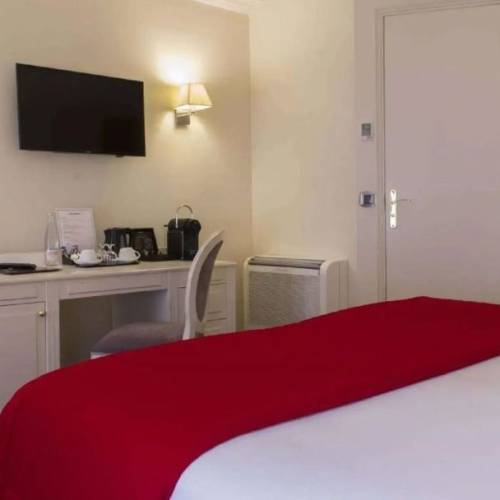 Paris 07 Ancien, FranciaTus vacaciones deben ser cómodas Hotel «Hotel Queen Mary Paris» se encuentra en París. Este hotel se encuentra a 3 km del centro de la ciudad. Puedes recorrer a pie el área residencial de el hotel. Lugares cercanos: Theatre Michel, Havre – Caumartin y Chapelle Expiatoire. Disfruta la noche en este bar agradable. Disfruta un momento ameno en el restaurante. ¿Quieres estar siempre conectado? Hay wifi disponible. Puedes coordinar una reunión de negocios, una reunión de la junta o incluso una entrevista laboral, ya que se ofrece un centro de negocios. ¿Quieres salir de excursión? Consulta al sector de asistencia turística del hotel. El personal del hotel puede reservarte un traslado. Accesibilidad: hay elevador/ascensor. Hay más servicios disponibles para los huéspedes del hotel. Por ejemplo, una sala de lavado, servicio de limpieza en seco, prensa, una caja de seguridad y un conserje. El personal del hotel habla inglés, español, italiano y francés. La habitación está decorada con calidez y cuenta con todo lo que necesitas para descansar después de un día largo y agitado. Incluye una ducha, una TV y un minibar. El equipamiento de la habitación depende de su categoría.