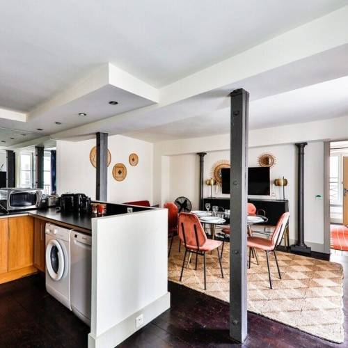 Paris 07 Ancien, FranciaSi quieres sentirte como en casa sin importar dónde estés, alójate en apartamento «502254 - Spacious duplex apartment for 12 people near Les Halles» se encuentra en París. Este apartamento se encuentra a minutos de distancia del centro de la ciudad. Puedes recorrer a pie el área residencial de el apartamento: Sentier, Oasis d'Aboukir y Tour Jean sans Peur. Disfruta un momento ameno en el restaurante. ¿Quieres estar siempre conectado? Hay wifi disponible. Puedes salir de viaje con tu mascota. Se aceptan mascotas. Los huéspedes con discapacidades pueden aprovechar el ascensor para acceder a los pisos más altos. En la habitación, encontrarás una ducha y una TV. El equipamiento de la habitación depende de su categoría.