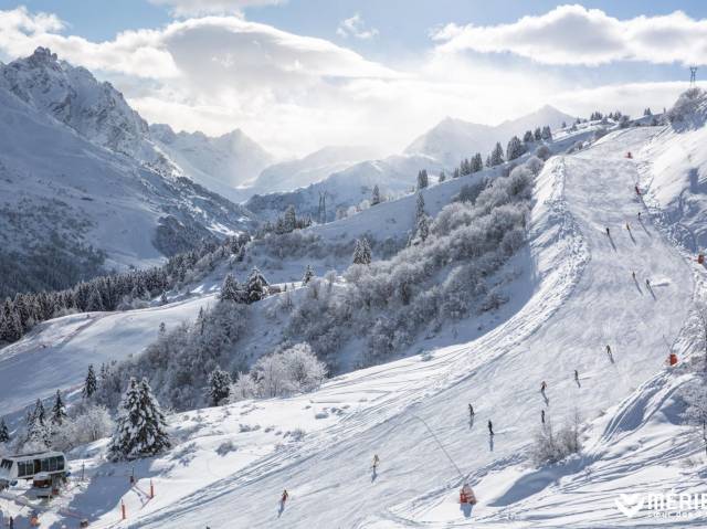La estación olímpica de esquí de Meribel se encuentra en el corazón de los 3 valles, el mayor dominio esquiable del Mundo, con no menos de 600 km de pistas de ski y 200 remontes mecánicos. Gracias a sus chalets construidos en piedra y madera del lugar, la población permanece perfectamente integrada con su entorno de montaña. El minucioso diseño de sus instalaciones, y gracias a las generosas condiciones de nieve de que goza el lugar, permite al esquiador salir y llegar a...más