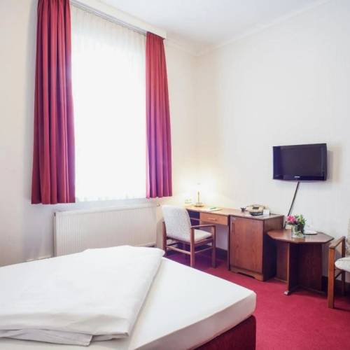 Erfurt, AlemaniaUn hotel genial para descansar bien después de una larga caminata por la ciudad. Hotel «Hotel Am Kaisersaal» se encuentra en Érfurt. Este hotel se encuentra en el centro de la ciudad. Por la mañana, puedes contemplar una gran vista de la ciudad mientras bebes tu café. Puedes recorrer a pie el área residencial de el hotel. Lugares cercanos: Neue Mühle, Haus zum Breiten Herd y Kunsthalle Erfurt. Disfruta la noche en este bar agradable. Gracias al wifi gratuito que se ofrece, podrás tener conexión continua. Si viajas en auto, puedes aprovechar el estacionamiento. También se ofrecen los servicios siguientes para los huéspedes: un doctor. ¿Quieres salir de excursión? Consulta al sector de asistencia turística del hotel. A disposición de los huéspedes, también se ofrece una sala de lavado, servicio de limpieza en seco, planchado, prensa, una caja de seguridad y un conserje. El personal del hotel habla inglés y alemán. La habitación está decorada con calidez y cuenta con todo lo que necesitas para descansar después de un día largo y agitado. Incluye una ducha y una TV. El equipamiento de la habitación depende de su categoría.