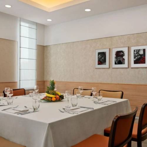 Fiumicino, Italia¿Quieres tomarte un descanso y explorar la ciudad? Hotel «Hilton Rome Airport Hotel» se encuentra en Fiumicino. Este hotel se encuentra a 3 km del centro de la ciudad. Puedes recorrer a pie el área residencial de el hotel: Vatican Museums, Plaza Navona y Panteón. Disfruta la noche en este bar agradable. Disfruta un momento ameno en el restaurante. Bebe una taza de café en la cafetería. ¿Quién sabe? Quizá sea el mejor de la ciudad. ¿Quieres estar siempre conectado? Hay wifi disponible. Si viajas en auto, puedes aprovechar el estacionamiento. Los servicios de belleza y bienestar: una sala de masajes, un sauna, un solárium, un baño de vapor, un centro de spa y un doctor. A los fanáticos de los deportes les encantará contar con un centro deportivo y una sala de ejercicios. Prepárate para unas vacaciones divertidas y emocionantes. En las instalaciones, encontrarás lo siguiente: una biblioteca. Aquí puedes pasarlo genial en el agua, ya que contarás con una piscina y una piscina cubierta. Para reuniones de negocios, el alojamiento ofrece: un centro de negocios, un salón de conferencias e instalaciones para eventos. Para reservar una excursión, consulta al sector de asistencia turística del hotel. Los huéspedes con discapacidades pueden aprovechar el ascensor para acceder a los pisos más altos. Hay más servicios disponibles para los huéspedes del hotel. Por ejemplo, una sala de lavado, servicio de limpieza en seco, un cajero automático, planchado, prensa, alquiler de autos, una caja de seguridad y un conserje. El personal del hotel habla inglés, español, italiano y francés. En la habitación, encontrarás un reloj alarma, una ducha, un minibar y pantuflas. Ten en cuenta que no todas las habitaciones incluyen todos los servicios mencionados.