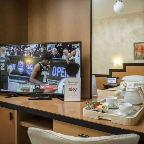 Fiumicino, ItaliaEs una buena opción si buscas algo de descanso en el hotel, pero también caminar por la ciudad. Hotel «Hotel Tiber Rooftop & Wellness» se encuentra en Fiumicino. Este hotel se encuentra a 1 km del centro de la ciudad. Puedes recorrer a pie el área residencial de el hotel. Lugares cercanos: Vatican Museums, Plaza Navona y Panteón. Disfruta la noche en este bar agradable. Prueba la cocina local y toma un descanso en el restaurante. Bebe una taza de café en la cafetería. ¿Quién sabe? Quizá sea el mejor de la ciudad. ¿Quieres estar siempre conectado? Hay wifi disponible. Para los turistas que viajan en auto, se ofrece estacionamiento. Los servicios de belleza y bienestar: una sala de masajes, un sauna, un solárium, un baño de vapor, un centro de spa y un doctor. Los huéspedes que amen los deportes podrán disfrutar un centro deportivo. Los turistas que no pueden vivir sin nadar podrán disfrutar una piscina y una piscina al aire libre. Puedes coordinar una reunión de negocios, una reunión de la junta o incluso una entrevista laboral en where_kind+ ya que se ofrece un centro de negocios, un salón de conferencias e instalaciones para eventos. Para reservar una excursión, consulta al sector de asistencia turística del hotel. Si quieres tener un viaje aún más cómodo, puedes solicitar un traslado. Los huéspedes con discapacidades pueden aprovechar el ascensor para acceder a los pisos más altos. Servicios adicionales que el hotel ofrece a sus huéspedes: una sala de lavado, servicio de limpieza en seco, check-in y check-out privados, prensa, una caja de seguridad y un conserje. El personal del hotel habla inglés, español y italiano. La habitación está decorada con calidez y cuenta con todo lo que necesitas para descansar después de un día largo y agitado. Incluye una ducha, una TV, un minibar y pantuflas. El equipamiento de la habitación depende de su categoría.