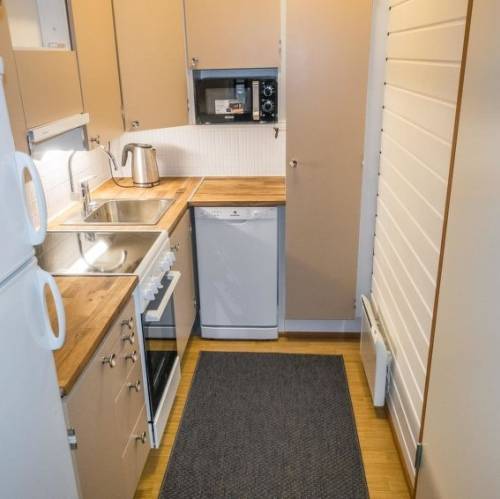 Inari, FinlandiaEl apartamento Kelotähti A14, situado en la segunda planta, ofrece un alojamiento acogedor a pocos pasos del centro de Saariselkä. El balcón ofrece vistas a Revontultentie, en dirección a Kaunispää. El apartamento dispone de una práctica cocina/sala de estar con todo lo necesario para comer. Dos dormitorios garantizan un sueño reparador. El dormitorio principal tiene una cama doble y el segundo dormitorio tiene una litera con una cama inferior de 120 cm de ancho y una cama superior de 90 cm de ancho. La sauna es un lugar agradable para relajarse después de un día de excursiones. En la misma habitación hay también un cuarto de baño y un aseo. También hay un aseo separado en el apartamento. El precio incluye limpieza final, toallas y ropa de cama hecha en la cama. Entre los servicios adicionales del apartamento se incluyen una vajilla completa, cafetera, tetera, tostadora, hervidor eléctrico, batidora eléctrica, batidora de inmersión, plancha y tabla de planchar y secador de pelo. También hay productos de higiene personal Erisan cuidadosamente seleccionados con la etiqueta de alergia de la Federación Finlandesa de Alergia y Asma y la etiqueta Swan. En la planta baja del edificio hay una sala de mantenimiento de esquís con guardaesquís, tabla de encerar y secador de pelo. Está prohibido fumar tanto en el apartamento como en el balcón para garantizar un ambiente agradable y libre de humo para todos. Tenga en cuenta también las obligaciones de indemnización según las decisiones de la junta de la asociación de viviendas, como alarmas de incendio injustificadas y gastos por pérdida de llaves.