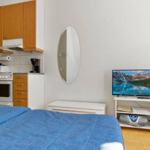 Inari, FinlandiaPermitido máximo 1 mascota / perro. El apartamento-estudio Luulampi F5, recién decorado a pie de calle, está situado en el extremo norte de una casa de 2 plantas en el centro de Saariselkä, ofreciendo una buena ubicación cerca de los servicios. El apartamento tiene su propio rincón para cocinar. El salón combina una zona de comedor y una zona de dormitorio con dos camas separadas con colchón de armazón para un sueño relajante. Para mayor comodidad, hay una sauna privada con lavabo e inodoro. Se admiten mascotas por un suplemento. La limpieza final está incluida en el precio. Se pueden pedir sábanas y toallas por un suplemento. El apartamento está equipado con vajilla, cafetera, hervidor de agua y tostadora, plancha y tabla de planchar y secador de pelo. El apartamento también dispone de un pequeño trastero exterior. En el edificio Outapailakka hay un guardaesquíes.