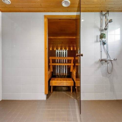 Govadas es un chalet adosado de tronco redondo en el centro de Saariselkä, con alojamiento de 200 m² en una sola planta. Las instalaciones incluyen una sala de estar con una chimenea de piedra natural atmosférica, un comedor con un grupo de comedor para 8-10, una cocina independiente bien equipada. Seis dormitorios separados, cada uno con camas separadas para 2 personas con ducha/aseo, lo que aumenta el confort y la privacidad del alojamiento. En las zonas comunes hay una sauna, un vestidor, un lavabo con 3 duchas, así como un aseo separado y un lavadero. Acceso desde el vestíbulo a los espacios comunes y al pasillo donde se encuentran los dormitorios. El precio del alquiler incluye la ropa de cama y la limpieza final. Govadas está situado en el centro de Saariselkä en una casa adosada de troncos redondos, los apartamentos están separados por una sala de mantenimiento de esquís. El equipamiento incluye vajilla completa, 2 frigoríficos-congeladores (compartimentos de congelación), cafetera, tostadora, hervidor de agua, smart TV, 2 armarios para secar la ropa, plancha y tabla de planchar, secador de pelo, 2 enchufes para la calefacción del coche, sala de mantenimiento de esquís.