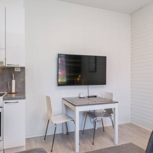 El apartamento Moitakuru A 17 es un estudio situado en la segunda planta de una casa unifamiliar en el extremo sur. La ubicación en el centro de Saariselkä ofrece una base perfecta para unas vacaciones fáciles cerca de los servicios. El acogedor apartamento estudio tiene todo lo que necesitas al alcance de la mano. La sala de estar tiene dos camas individuales con un cubrecolchón desde el que se puede ver la televisión después de un día de actividades. Una cocina americana al lado permite preparar sabrosos aperitivos en un momento. La sauna del apartamento permite relajarse tras un día de excursiones. La ducha y el inodoro se encuentran en el lavabo. El precio incluye la limpieza final y el suministro de sábanas y toallas para el número de personas reservado. El apartamento está equipado con vajilla básica, cafetera, hervidor de agua, tostadora, plancha y tabla de planchar y secador de pelo. El apartamento también dispone de un pequeño trastero exterior. Los esquís se pueden guardar en la sala común de mantenimiento de esquís del edificio A.