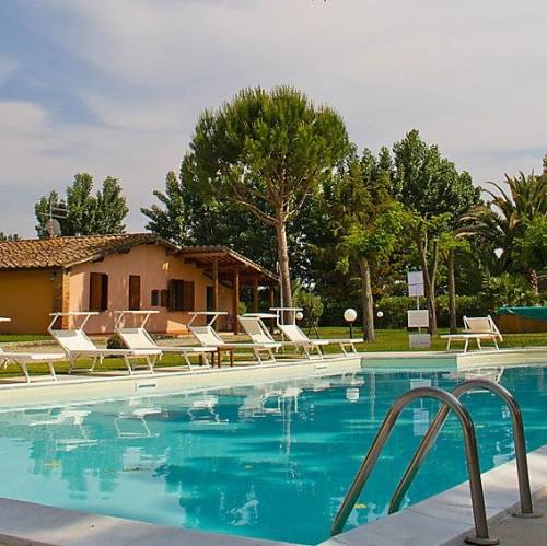 Grosseto, ItaliaEl hotel se encuentra en un punto clave del territorio de Maremma y limita al sur con la desembocadura del río Ombrone y el parque natural Monti dell'Uccellina. Punta Ala está a 40 km y la localidad de Grosseto queda a solo 5 km del alojamiento. Hay bares, como el Kulmbacher Platz, a unos 2 km de distancia. La playa dista unos 7 km, al igual que la estación de ferrocarril de Grosseto. El aeropuerto más cercano es el aeropuerto de Pisa (a 160 km) o el de Roma Fiumicino (a 180 km).Se trata de un establecimiento que ocupa 450 hectáreas, integrado en este apacible pueblo, y con el lujo de la serena belleza de la naturaleza virgen. Consta de tres edificios, aparcamiento, jardín y parque infantil. En este apartotel hay un total de 38 apartamentos. Los huéspedes son recibidos en un vestíbulo, y hay caja fuerte. Hay también dos restaurantes en el mismo establecimiento, entre los que los huéspedes podrán escoger.Todos los apartamentos se caracterizan por una atmósfera única de paz y tranquilidad, y están amueblados con el estilo rural tradicional. La mayoría de ellos dan a los jardines, mientras que otros dan al paisaje del campo. Todos los apartamentos están cerca de las piscinas y tienen 1, 2 o 3 dormitorios dobles, 1 o 2 cuartos de baño particulares con ducha, bañera y secador de pelo, así como un rincón de cocina totalmente equipada con nevera, hornillos, microondas y cafetera/tetera. El equipamiento de las habitaciones se completa con aire acondicionado, calefacción, TV vía satélite, teléfono y una veranda privada con mesa y sillas. También hay lavadora y set de plancha.