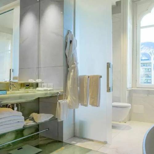 Stresa, ItaliaPlanes para el viaje: descansar y disfrutar. Resort «Villa e Palazzo Aminta Hotel Beauty and SPA» se encuentra en Stresa. Este resort se encuentra a corta distancia del centro de la ciudad. Puedes recorrer a pie el área residencial de el resort: Church of the Madonnina in Prato, Casa Camuzzi y Swissminiatur. Puedes hacer una pausa en el bar. Disfruta un momento ameno en el restaurante. Si no puedes vivir sin café, deléitate en la cafetería. ¿Quieres estar siempre conectado? Hay wifi disponible. Si viajas en auto, puedes usar el estacionamiento. Los servicios de belleza y bienestar: una sala de masajes, un solárium, un baño de vapor, un centro de spa y un doctor. A los fanáticos de los deportes les encantará contar con un centro deportivo, un área de minigolf, un área de yoga y un club de buceo. En las instalaciones del alojamiento, encontrarás los servicios siguientes: una biblioteca y un área con parrillas. Los turistas que no pueden vivir sin nadar podrán disfrutar una piscina, una piscina cubierta y una piscina al aire libre. Para reuniones de negocios, el alojamiento ofrece: un centro de negocios, un salón de conferencias e instalaciones para eventos. Hay salas de juegos para niños en el resort. Se divertirán tanto que probablemente tengas que pasar el tiempo con adultos. El sector de asistencia turística del resort te ayudará a reservar una excursión. No deberás dejar a tu mascota en casa, ya que se aceptan. Para moverte con libertad por la ciudad, el resort te ofrece traslado. Los huéspedes con discapacidades pueden aprovechar el ascensor para acceder a los pisos más altos. A disposición de los huéspedes, también se ofrece una sala de lavado, servicio de limpieza en seco, un cajero automático, planchado, prensa, alquiler de autos, una caja de seguridad y un conserje. El personal del resort estará encantado de hablarte en inglés, español, italiano, alemán, ruso y francés. Esto es lo que encontrarás en la habitación para descansar después de un día largo: una ducha, una TV, un minibar, batas y pantuflas. Ten en cuenta que no todas las habitaciones incluyen todos los servicios mencionados.