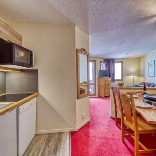 Val Thorens, FranciaResidencia "Village Montana", rústica, confortable. 3 casas en la residencia. A 350 m del centro de Val Thorens, a 10 km del centro de Les Ménuires, a pie de pista. En el complejo: recepción, restaurante, sala de descanso, billar, sala guardaesquís. Trastero a disposición. Garaje comunitario (extra). Tienda 350 m, restaurante 100 m, parada de autobús 500 m. Polideportivo 550 m, telesquí, pistas de esquí, escuela de esquí, escuela de esquí para niños, pista de trineo 50 m. Zonas de esquí populares fácilmente accesibles: Les 3 Vallées. A tener en cuenta: equipamiento para bebés a demanda. La foto es sólo un ejemplo de una vivienda tipo. Los alojamientos pueden diferir en la superficie habitable, la distribución de las estancias, el equipamiento y el mobiliario. "Village Montana (VTH211)", apartamento de 2 estancias 35 m2. Con mobiliario rústico y con mucha madera: salón con mesa de comedor y TV satélite. 1 dorm. con 2 camas. Rincón-dormitorio con puerta corredera con 2 camas. Rincón-cocina (2 fogones, horno, lavavajillas, tostadora, hervidor de agua eléctrico, microondas, cafetera eléctrica). Baño, WC separado. Calefacción. Balcón. Vista bonita a las montañas. El alojamiento dispone de: caja fuerte. Internet (Wifi, gratis).