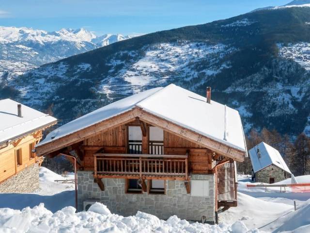 Veysonnaz, SuizaChalet tipo suizo "au Bisse", de 2 plantas. En la periferia, a 350 m del centro, lugar tranquilo en una pendiente. Privado: jardín con césped. Terraza, muebles de jardín. En invierno las cadenas de nieve son necesarias. 20 m acceso por escaleras hasta la casa. Aparcamiento. Tienda 350 m, piscina cubierta 400 m. Tenis 400 m, telecabina 1 km, parada de ski-bus 350 m. Chalet de madera 4 estancias 80 m2 en 2 plantas. Salón-comedor con chiminea nórdica, TV cable y equipo de música. Salida al jardín. Cocina abierta (horno, lavavajillas, cafetera eléctrica). Ducha/WC. Calefacción eléctrica. Planta superior: 2 dorm., cada habitación con 2 camas. 1 dorm. con 1 x 2 literas. Baño/WC. Orientación oeste, jardín grande, orientación sur. Muebles de terraza. Vista muy bonita a las montañas y al valle. El alojamiento dispone de: lavadora. Internet (Wifi, gratis). Plaza de aparcamiento (1 coche) junto a la casa. A tener en cuenta: apartamento para no fumadores.