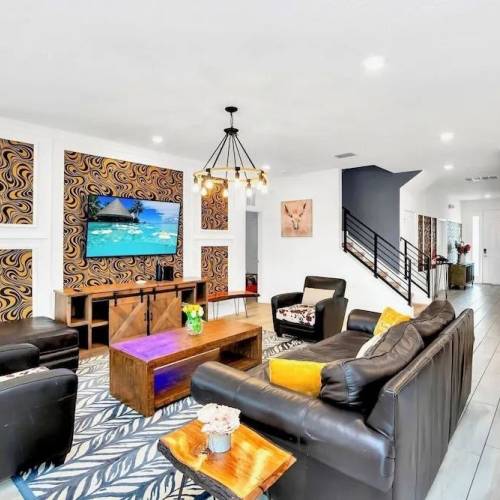 City of Kissimmee, Estados UnidosVacaciones tranquilas o activas, tú decides. Cabaña «Stunning 4 Bd w/ GameRoom Close to Disney 5110» se encuentra en Kissimmee. Esta cabaña se encuentra a 10 km del centro de la ciudad. Puedes recorrer a pie el área residencial de la cabaña: Museo de Historia Militar, Disney's Hollywood Studios y Epcot. Disfruta un momento ameno en el restaurante. Para los turistas que viajan en auto, se ofrece estacionamiento. Prepárate para unas vacaciones divertidas y emocionantes. En las instalaciones, encontrarás lo siguiente: un área con parrillas. Para reuniones de negocios, el alojamiento ofrece un salón de conferencias. El sector de asistencia turística de la cabaña te ayudará a reservar una excursión. Accesibilidad: hay elevador/ascensor. Servicios adicionales que la cabaña ofrece a sus huéspedes: una sala de lavado, servicio de limpieza en seco y un conserje.