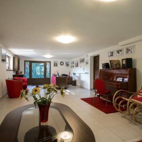Zawoja, PoloniaCasa señorial "Lux Dom na Kolistym Groniu", moderna, lujosa de 2 plantas. Lugar tranquilo en una pendiente, en el campo, en un bosque. Privado: terreno 1'700 m2 (vallada), jardín grande, cuidado, terreno con hierba, piscina cubierta rectangular, climatizada (9 x 3 m). Terraza (58 m2), barbacoa. En el inmueble: Wifi, sauna, gimnasio, zona de spa, sala guardaesquís, calefacción central, alarma, lavadora, secadora. Acceso empinado, estrecho hasta la casa. Aparcamiento junto a la casa. Atracciones en los alrededores: Babiogórski Park Narodowy 5 km. Zonas de esquí populares fácilmente accesibles: Wyciąg narciarski Kolisty Groń, Wyciąg narciarski Wojtek. Villa 6 estancias 277 m2 en 2 plantas. Parcialmente abuhardillada, con mobiliario moderno y lujoso: salón-comedor abierto con 1 sofá-cama y TV satélite. Salida al jardín, a la terraza. Grande cocina abierta (horno, lavavajillas, 4 placas de vitrocerámica, microondas, congelador, grill) con mesa de comedor. Baño/WC, ducha. Calefacción, calefacción eléctrica. Planta superior: 1 dorm. con 1 sofá-cama (160 cm, 200 cm de longitud), 1 cama de matrimonio (180 cm, 200 cm de longitud). Salida al balcón. 1 dorm. con 1 sofá-cama (100 cm, 200 cm de longitud), 1 cama de matrimonio (180 cm, 200 cm de longitud). 1 dorm. con 1 sofá-cama (100 cm, 200 cm de longitud), 1 cama de matrimonio (160 cm, 200 cm de longitud). 1 dorm. con 1 sofá-cama (100 cm, 200 cm de longitud), 1 cama de matrimonio (160 cm, 200 cm de longitud). 1 dorm. con 1 cama de matrimonio (160 cm, 200 cm de longitud). Baño/WC, 2 duchas. Calefacción, calefacción eléctrica. Terraza grande 58 m2, terraza-jardín, jardín grande. Muebles de terraza, rincón para sentarse. Vista bonita a las montañas y al paisaje. El alojamiento dispone de: lavadora, secadora, sauna. Internet (Wifi). Plaza de aparcamiento junto a la casa.