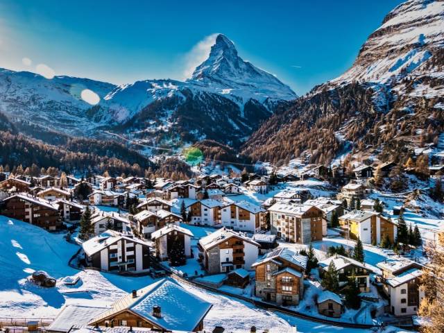 Zermatt, SuizaEste hotel está situado en el centro de un pueblo de montaña. A unos minutos andando podrá llegar a todas las tiendas y comercios, así como a la estación de ferrocarril de montaña, con el que tendrá fácil acceso a las zonas de esquí y de senderismo. Desde el edificio del hotel tendrá unas impresionantes vistas de la famosa montaña Matterhorn y de los glaciares colindantes. Este lugar es ideal para practicar deportes de invierno, así como para salir de tiendas o para entretenerse e ir de ocio.Este tradicional hotel de lujo, inaugurado en el año 1851, tiene un edificio de tres alas. En un total de cinco plantas se reparten 133 habitaciones, 51 de ellas suites. En el año 2003 fue restaurado y cuenta con un hall de entrada con ascensor, un acogedor bar de vestíbulo y una elegante área de recepción, abierta las 24 horas del día, que le ofrece servicio de cambio de divisa, de caja fuerte y de guardarropa. Además de varios salones y de una sala de juegos, en el hotel podrá encontrar varias salas y salones para celebrar conferencias y reuniones, todas dotadas de un buen equipamiento técnico. En cuanto al aspecto gastronómico, hay un par de restaurantes a la carta en los que se sirven deliciosas especialidades. En el restaurante-comedor, en el que hay una magnífica atmósfera, podrá almorzar y cenar. El restaurante Le Cervin está especializado en carnes y cocina francesa (si lo desea, hay servicio de canguro). Para completar estas prestaciones, tendrá a su disposición servicio de habitaciones y de lavandería, así como conexión a Internet (también inalámbrica).