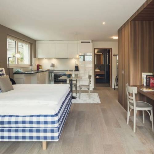 Zermatt, SuizaTus vacaciones deben ser cómodas Hotel «The Flat by CERVO Zermatt» se encuentra en Zermatt. Este hotel se encuentra en el centro de la ciudad. Antes de ir a dormir, puedes recorrer los principales atractivos de la ciudad. Puedes recorrer a pie el área residencial de el hotel: Zermatt Ski Resort, Zermatt-Furi Ski Lift y Matterhorn Express Ski Lift. Prueba la cocina local y toma un descanso en el restaurante. Hay disponible wifi gratuito en las instalaciones. Solicita más información al hacer check-in. Para reuniones de negocios, el alojamiento ofrece un salón de conferencias. Los huéspedes con discapacidades pueden aprovechar el ascensor para acceder a los pisos más altos. A disposición de los huéspedes, también se ofrece una sala de lavado y un conserje. En la habitación, encontrarás una ducha, una TV, batas y pantuflas. El equipamiento de la habitación depende de su categoría.