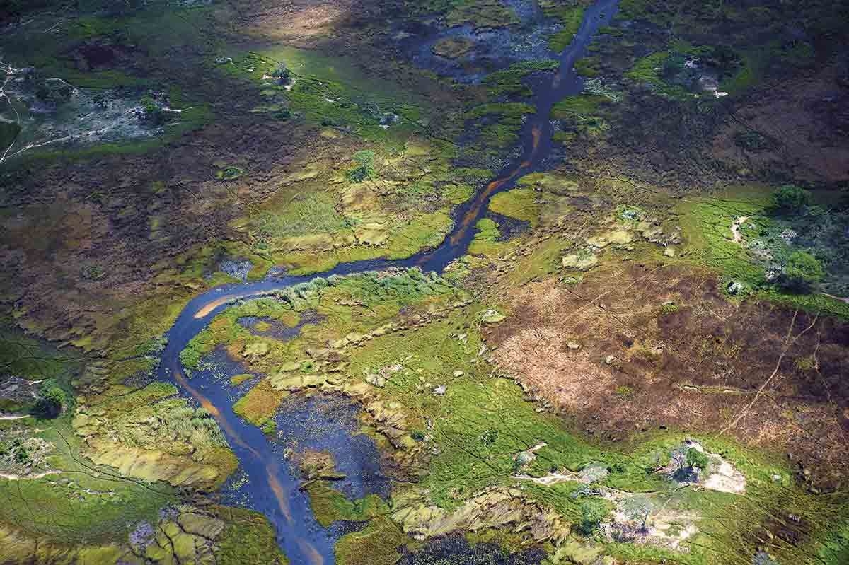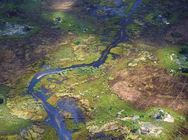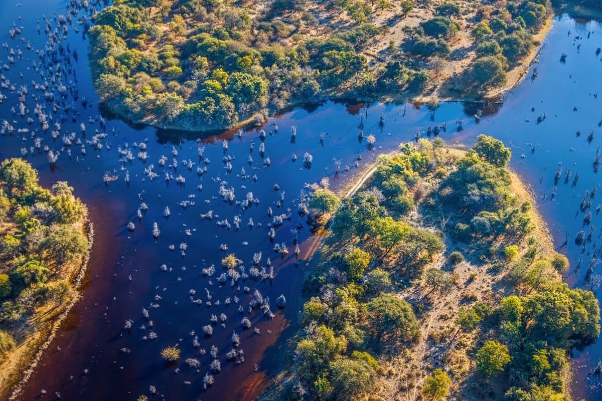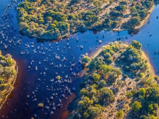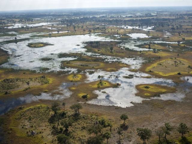 El delta del Okavango es un caso poco usual de delta, en el sentido de que este río no desemboca en el mar.