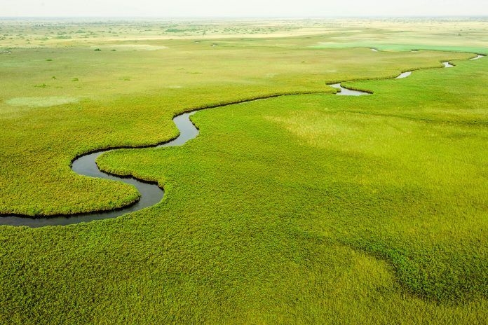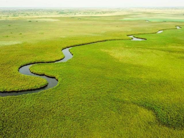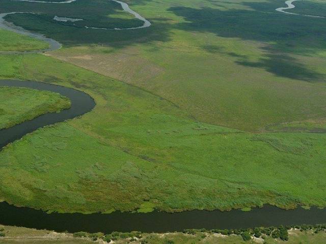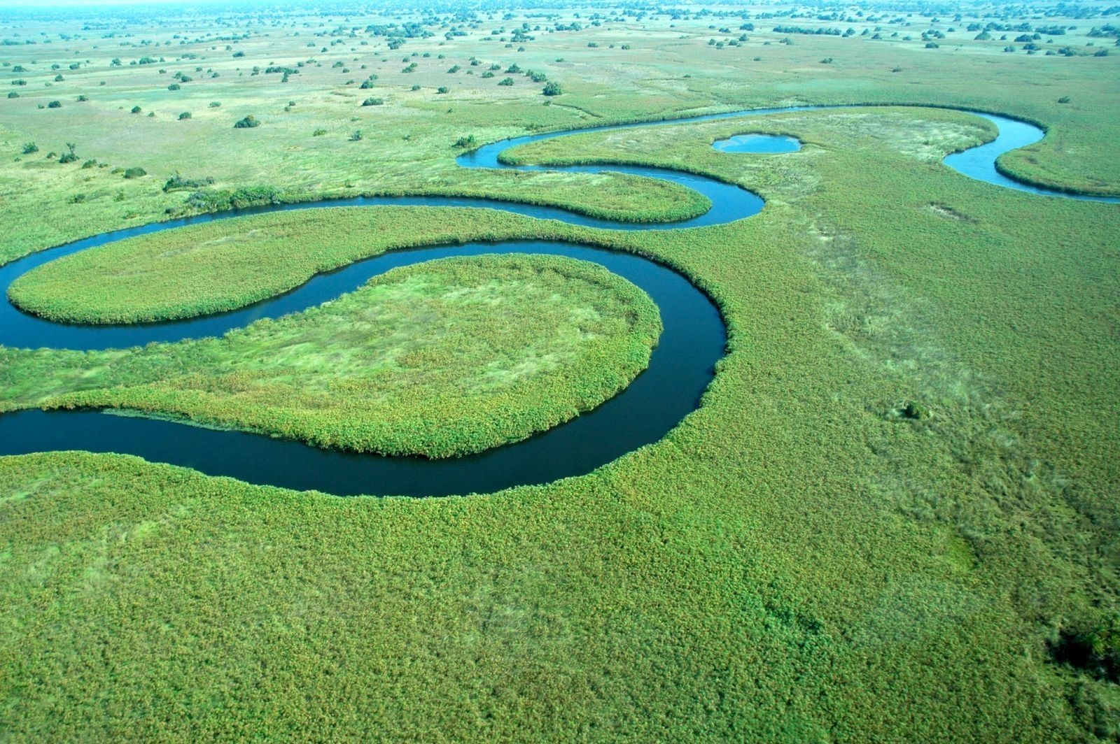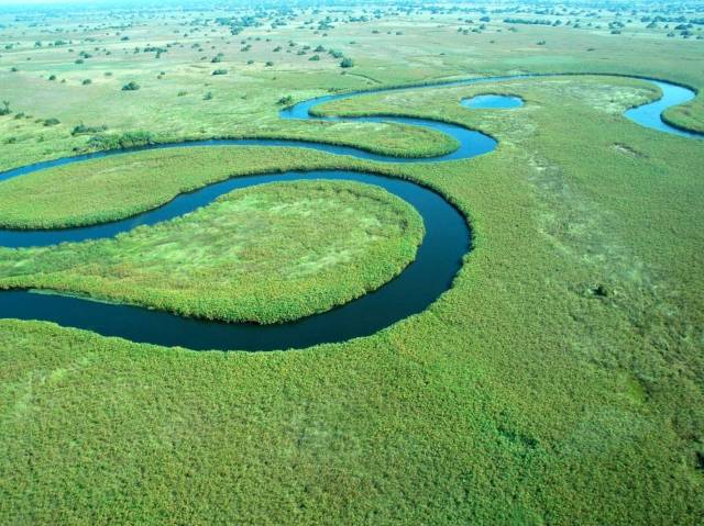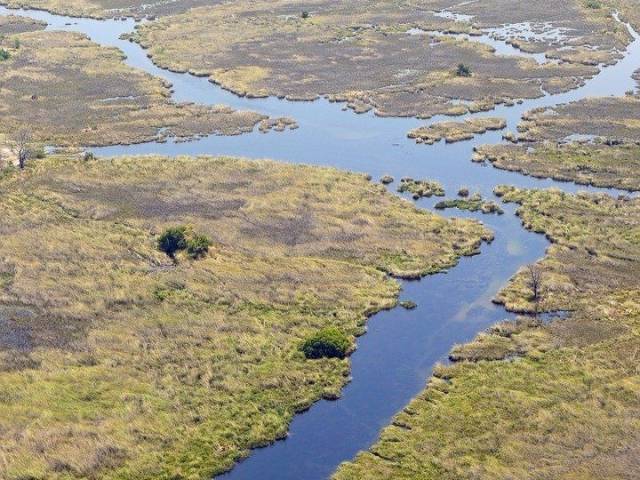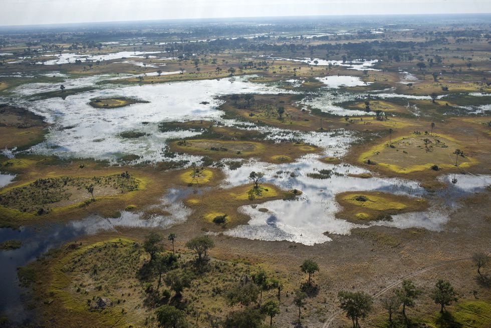 El delta del Okavango es un caso poco usual de delta, en el sentido de que este río no desemboca en el mar.